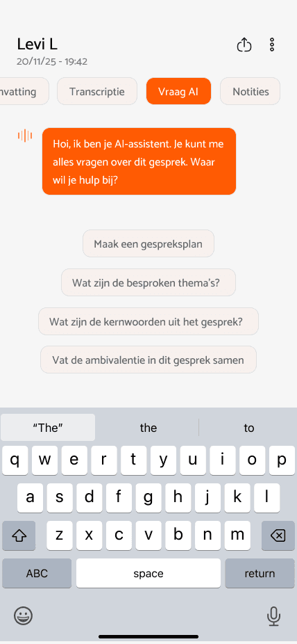 De eerste 30 minuten transcriberen krijg je volledig gratis van ons. Je kunt alle functies gebruiken, de AI testen, opnames maken en zelf ervaren hoe veel sneller je werkt zonder meteen een abonnement te hoeven kiezen.